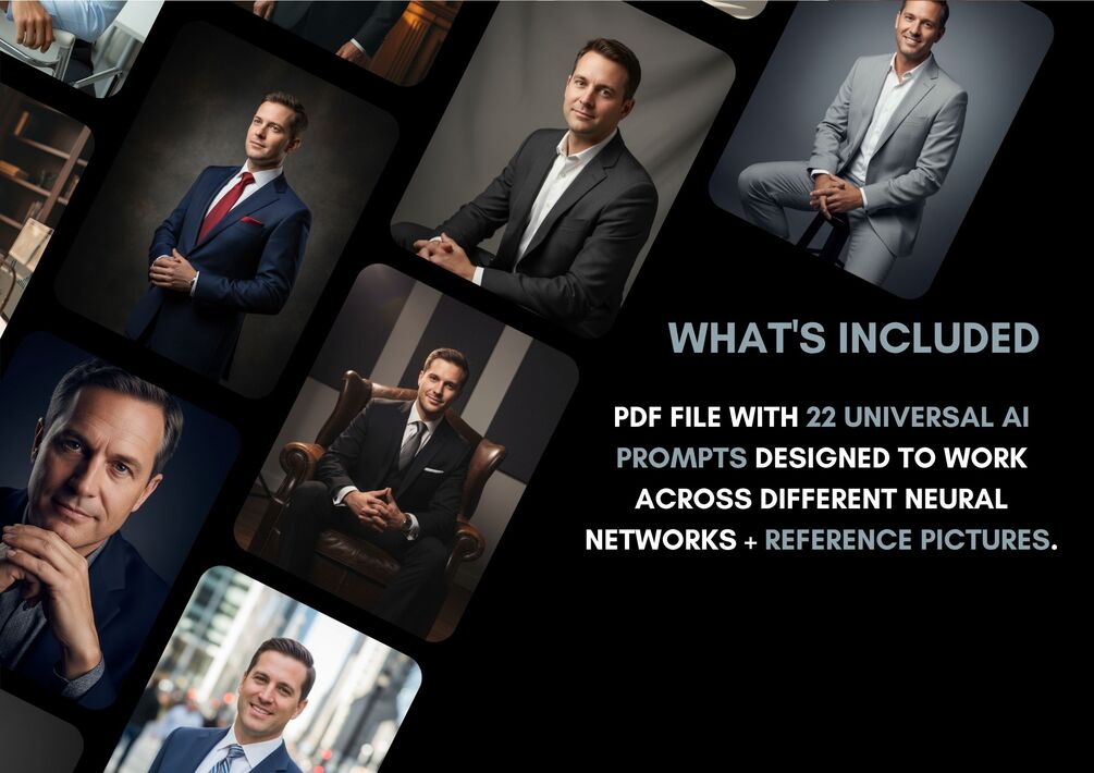 This AI prompt pack includes 22 professional men’s headshot prompts — perfect for LinkedIn, websites, personal branding, and corporate visuals.