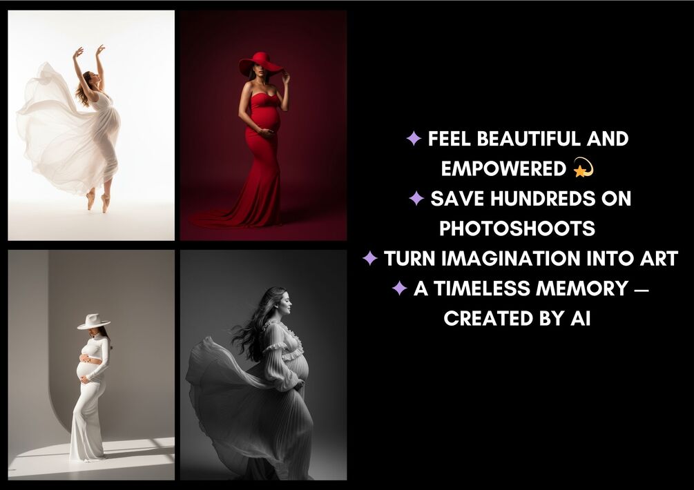 Capture beauty, softness, and strength — your perfect maternity photoshoot created entirely by AI.